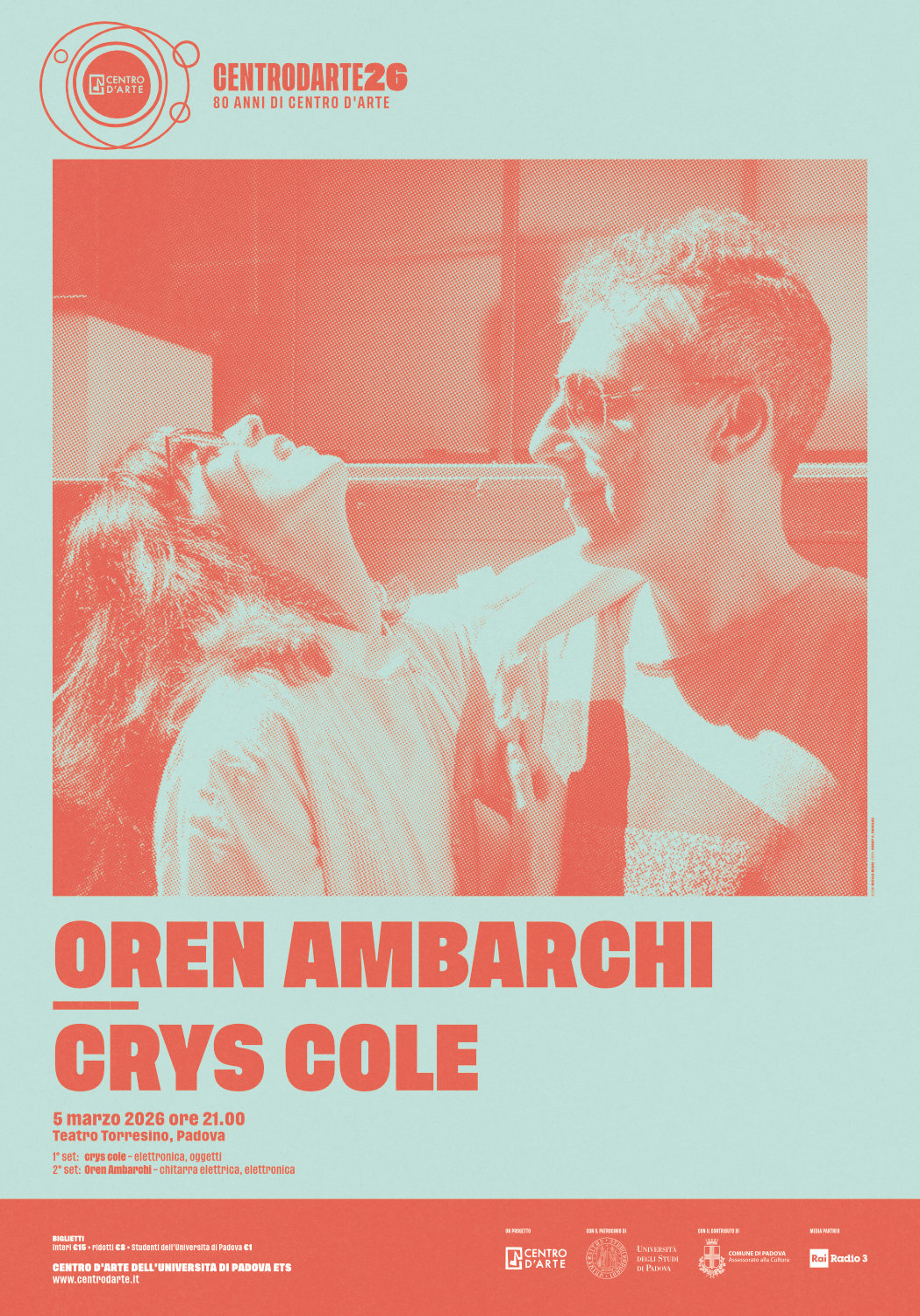 Il 5 marzo il Centro d’Arte propone un doppio set che affianca due eccellenti musicisti e compositori come l’australiano Oren Ambarchi e la canadese crys cole, per una panoramica sul mondo della ricerca elettroacustica contemporanea, ostinatamente fuori dalle rigide maglie dell’accademia.